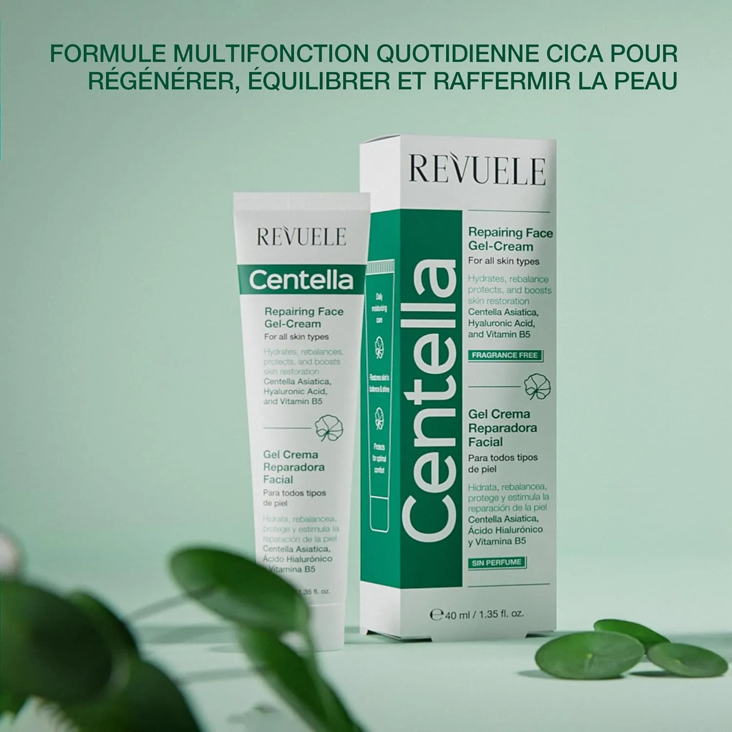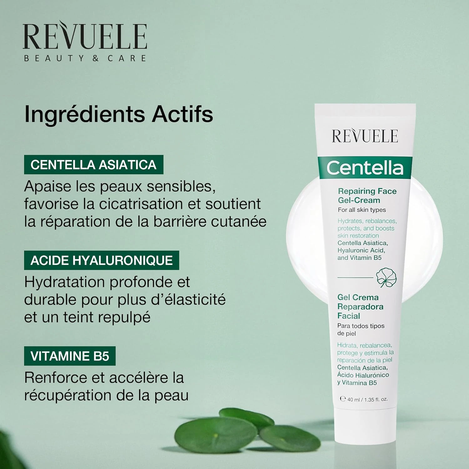 La gel-crème visage réparateur REVUELE CENTELLA est un soin quotidien ultra-léger pour tous les types de peau présentant un teint terne, des signes de fatigue et de fines ridules. Sa formule multifonctionnelle, enrichie en CICA (Centella Asiatica), Acide Hyaluronique et Vitamine B5, hydrate immédiatement la peau et agit tout au long de la journée pour protéger et soutenir sa régénération. Elle aide à restaurer l’équilibre et l’élasticité de la peau, la laissant plus ferme, plus saine et plus jeune.