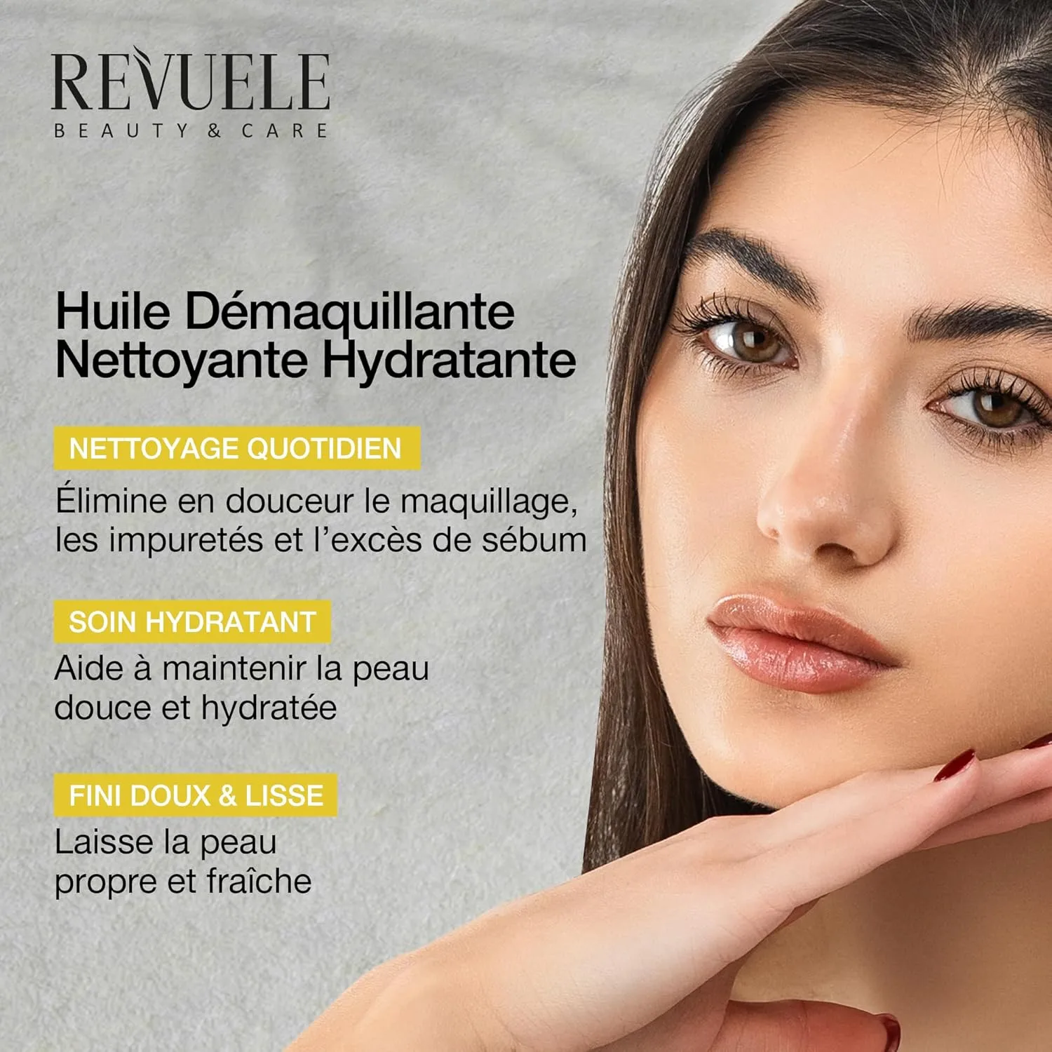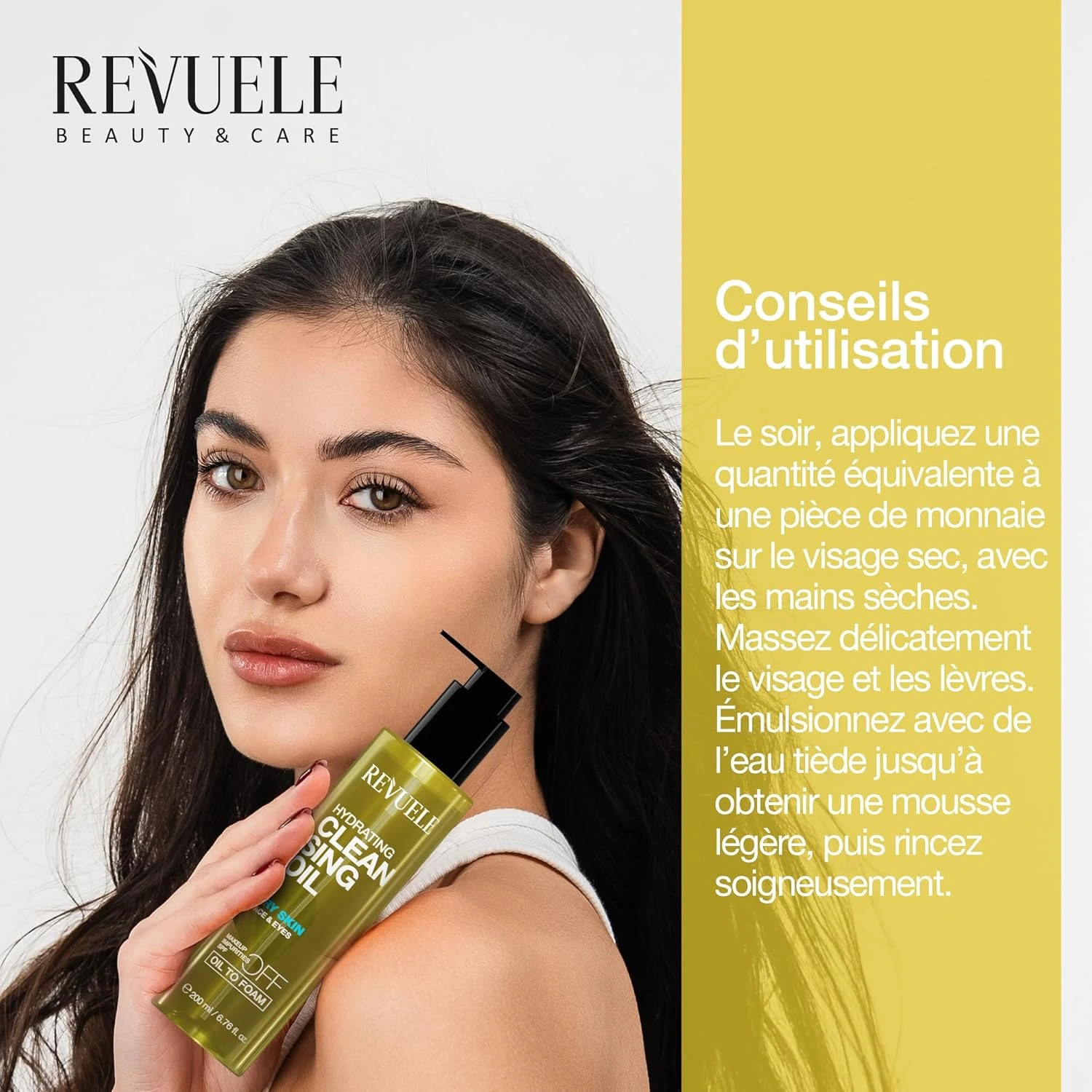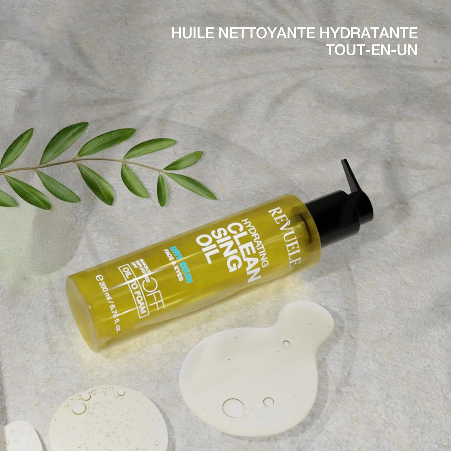 L’huile nettoyante hydratante REVUELE élimine en douceur les impuretés, les résidus de crème solaire, le maquillage et l’excès de sébum. Infusée d’huiles naturelles, cette huile nettoyante hydrate et lisse la peau en profondeur. Sa formule transformatrice, huile-mousse, laisse la peau nette et douce, sans laisser de film gras. Cette huile nettoyante légère tout-en-un convient aux peaux sèches et à un usage quotidien.